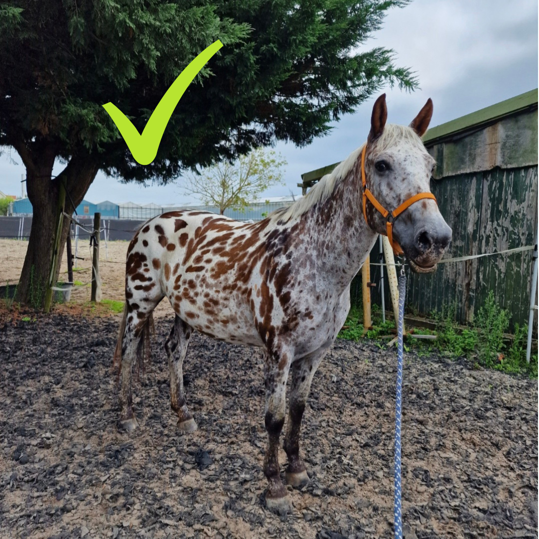 Een recente standfoto, liever vandaag genomen dan gister. Waar het paard volledig op staat en in ieder geval een oog duidelijk zichtbaar is. Er mogen geen andere mensen/dieren op de foto staan. Het paard mag geen dekens om hebben en geen tuig. De foto mag niet bewerkt zijn.